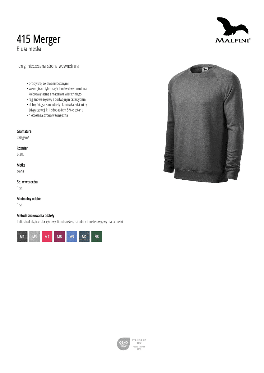 dolny ściągacz, mankiety i lamówka z dzianiny ściągaczowej 1:1 z dodatkiem 5 % elastanu