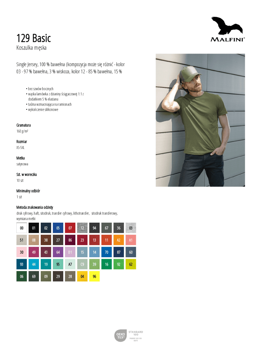 Single Jersey, 100 % bawełna (kompozycja może się różnić - kolor 03 - 97 % bawełna, 3 % wiskoza, kolor 12 - 85 % bawełna, 15 % wiskoza), wykończenie silikonowe
