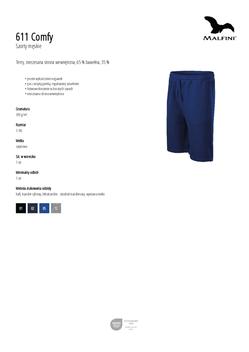 Terry, nieczesana strona wewnętrzna, 65 % bawełna, 35 % poliester
