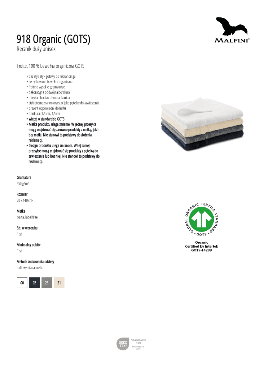 | Skład materiału: | 100 % bawełna organiczna |