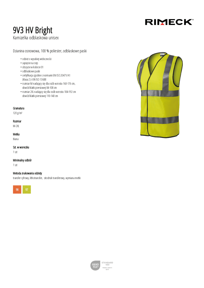 certyfikacja zgodnie z normami EN ISO 20471/A1 (klasa 2) i EN ISO 13688