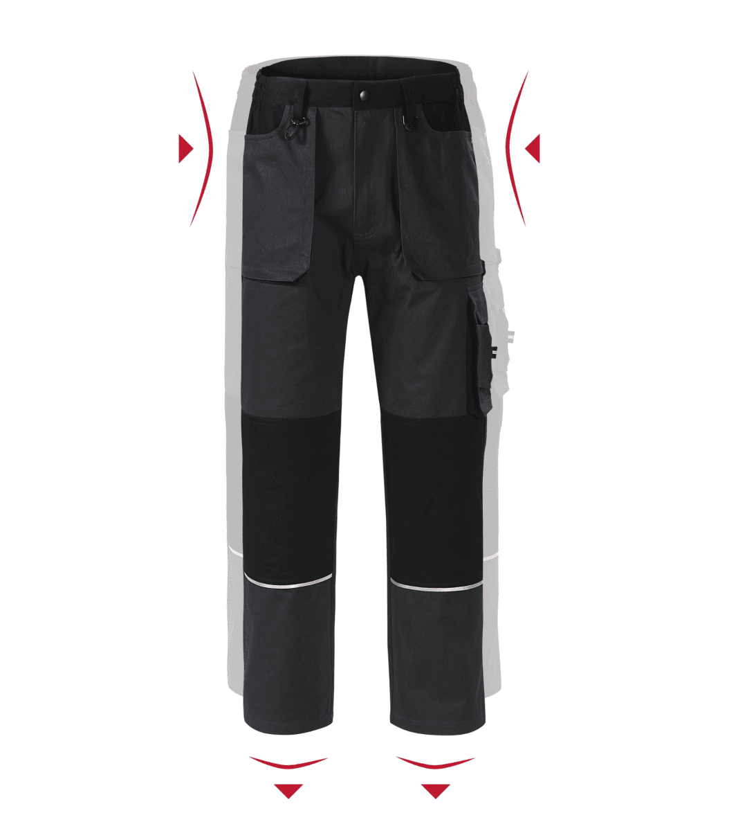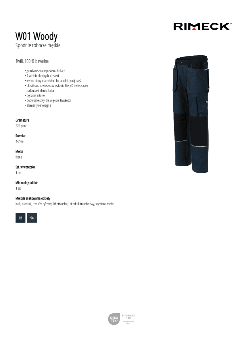 wzmocniony materiał na kolanach i tylnej części