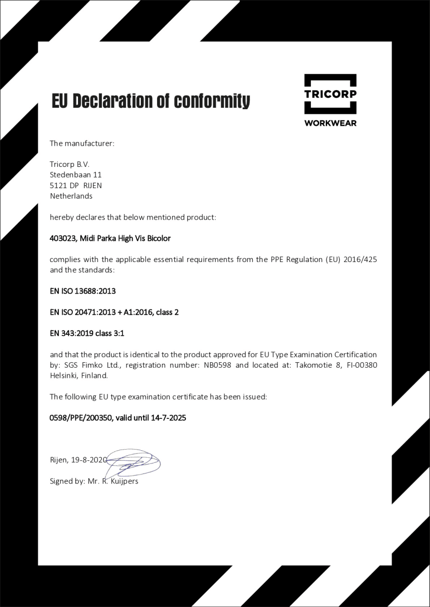 EN ISO 20471/A1 EN 343 |