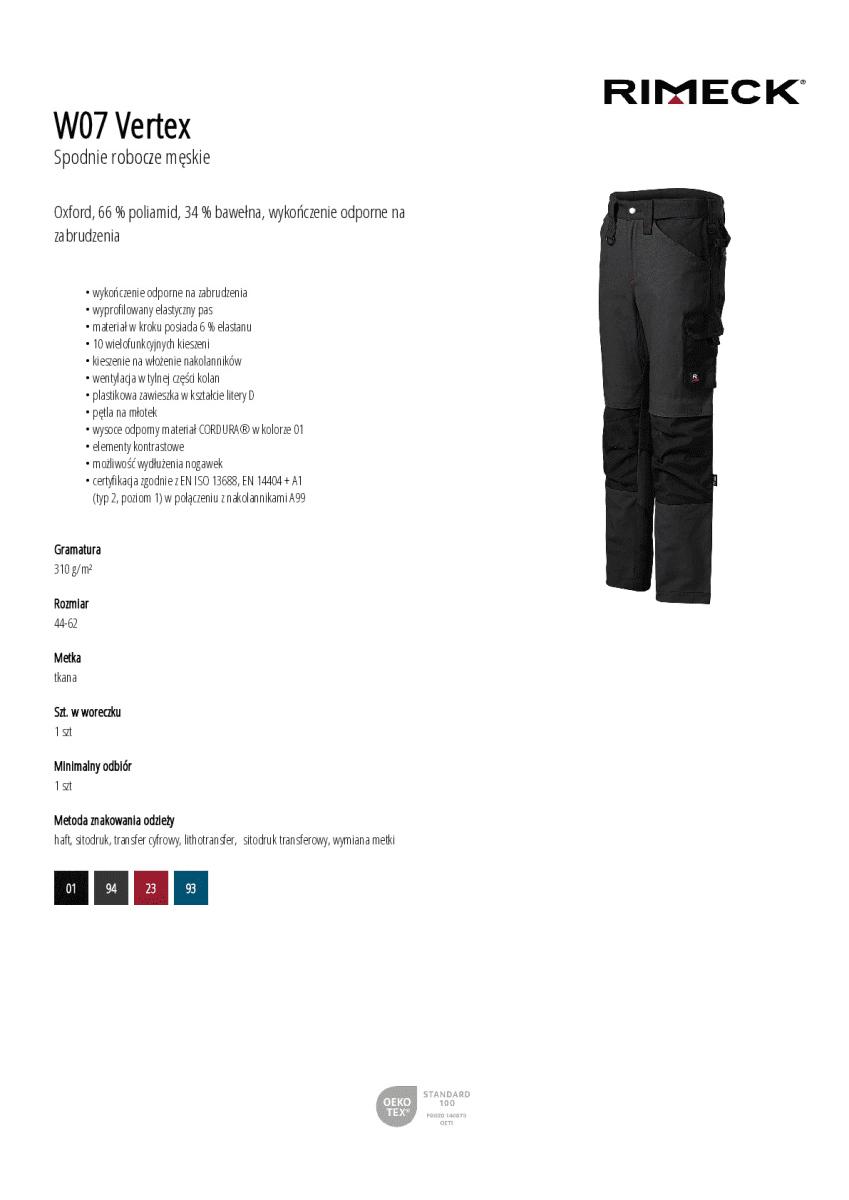 certyfikacja zgodnie z EN ISO 13688, EN 14404 + A1 (typ 2, poziom 1) w połączeniu z nakolannikami A99