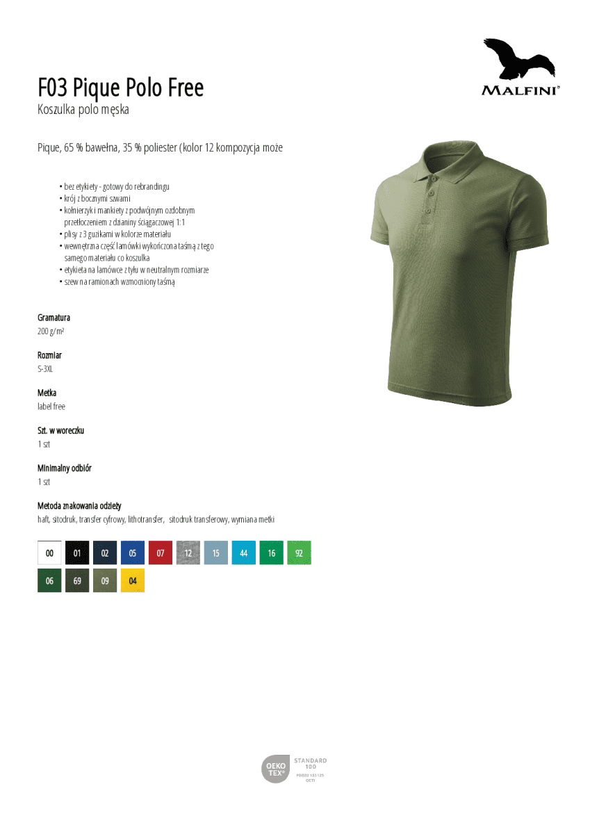 Pique, 65 % bawełna, 35 % poliester (kolor 12 kompozycja może się różnić - 85 % bawełna, 15 % wiskoza)