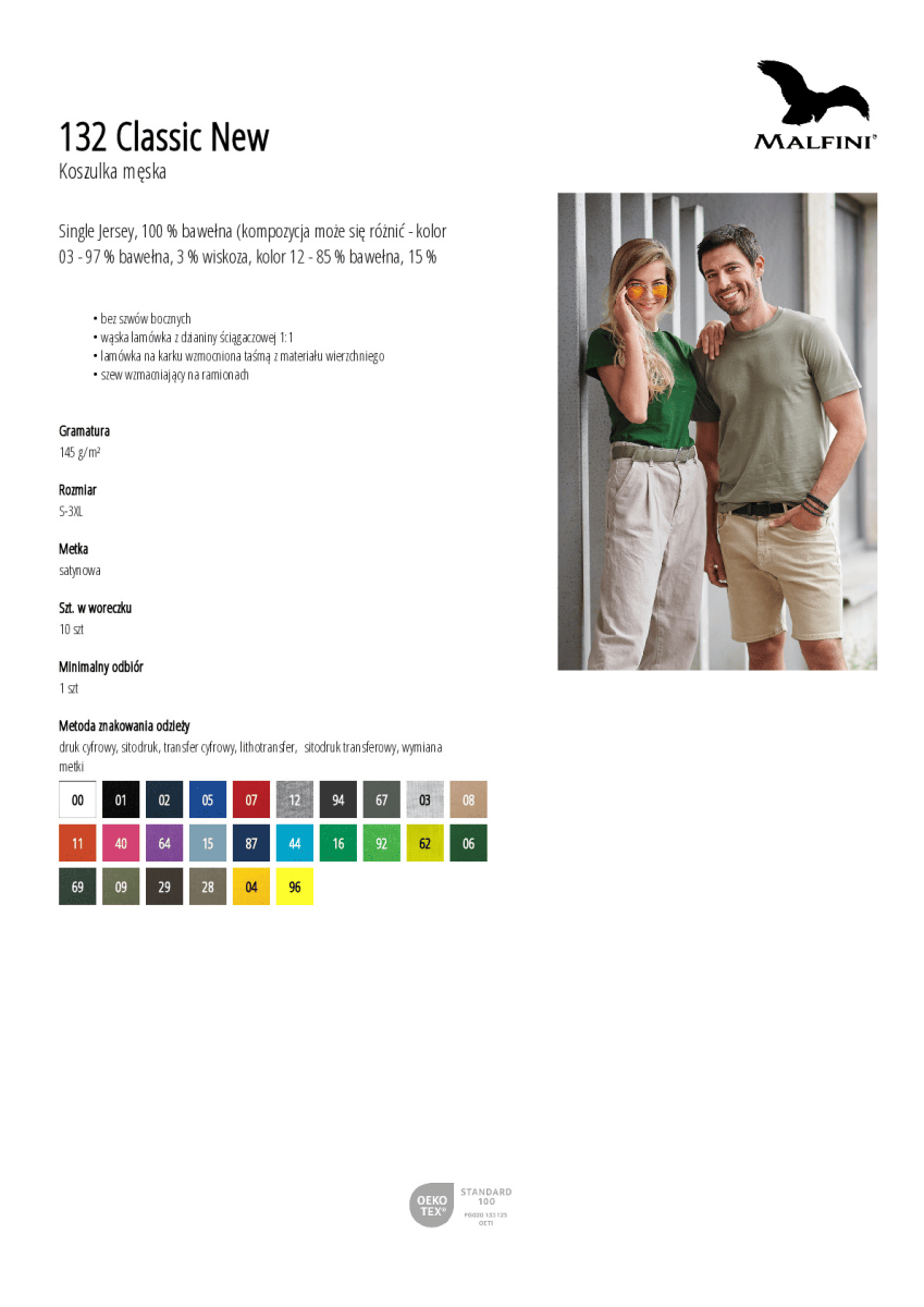 Single Jersey, 100 % bawełna (kompozycja może się różnić - kolor 03 - 97 % bawełna, 3 % wiskoza, kolor 12 - 85 % bawełna, 15 % wiskoza)