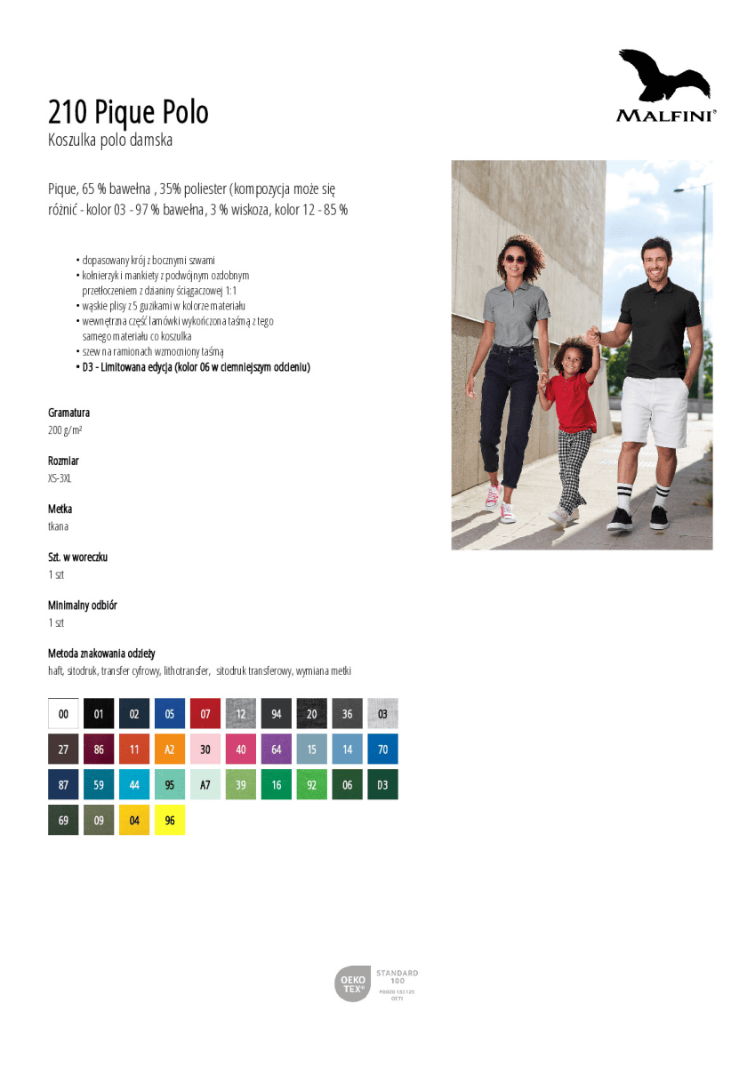 Pique, 65 % bawełna , 35% poliester (kompozycja może się różnić - kolor 03 - 97 % bawełna, 3 % wiskoza, kolor 12 - 85 % bawełna, 15 % wiskoza)