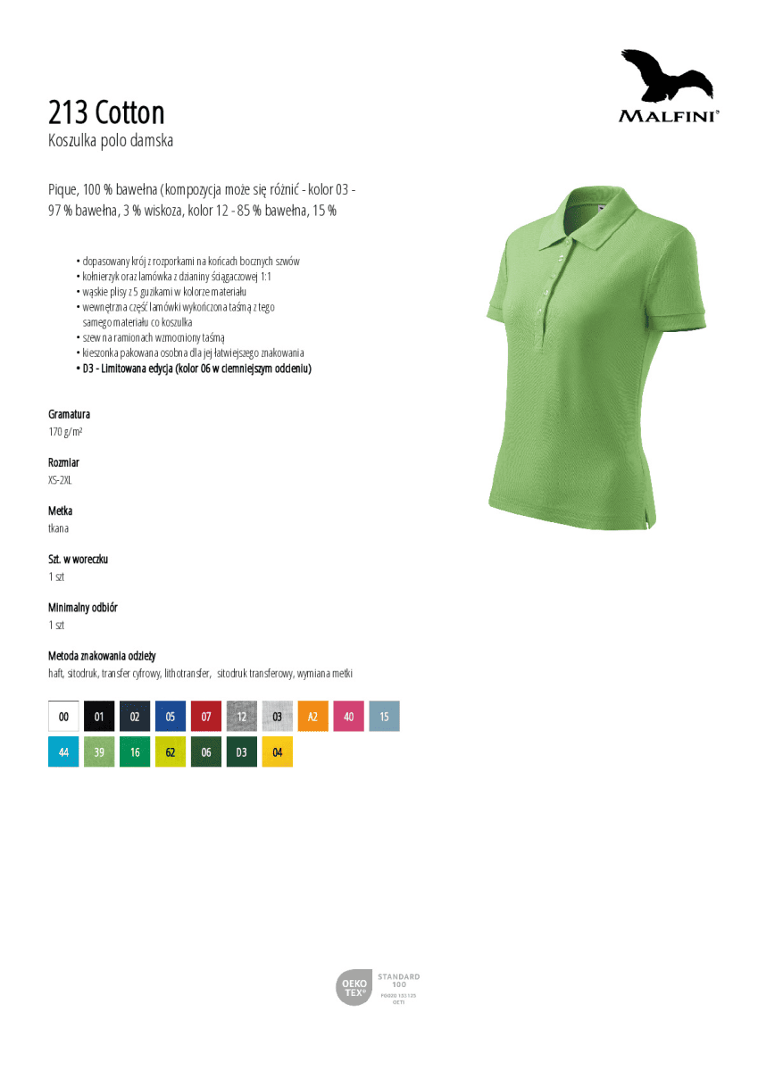 Pique, 100 % bawełna (kompozycja może się różnić - kolor 03 - 97 % bawełna, 3 % wiskoza, kolor 12 - 85 % bawełna, 15 % wiskoza)